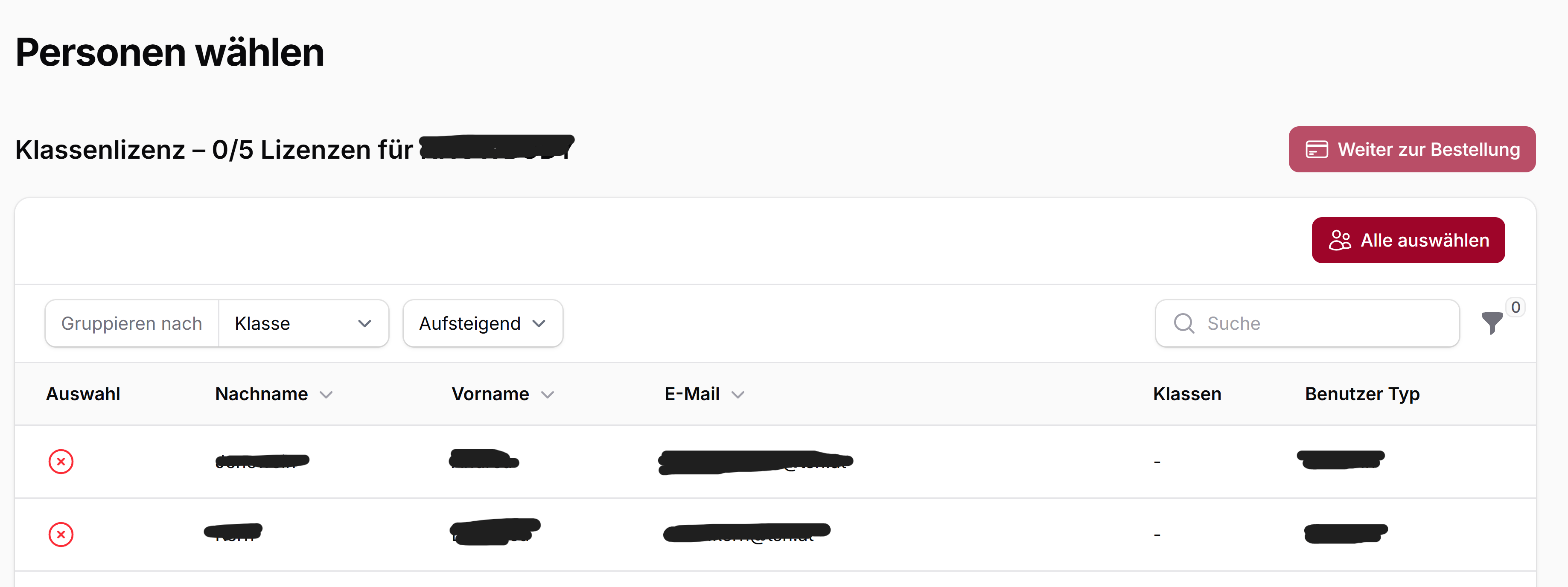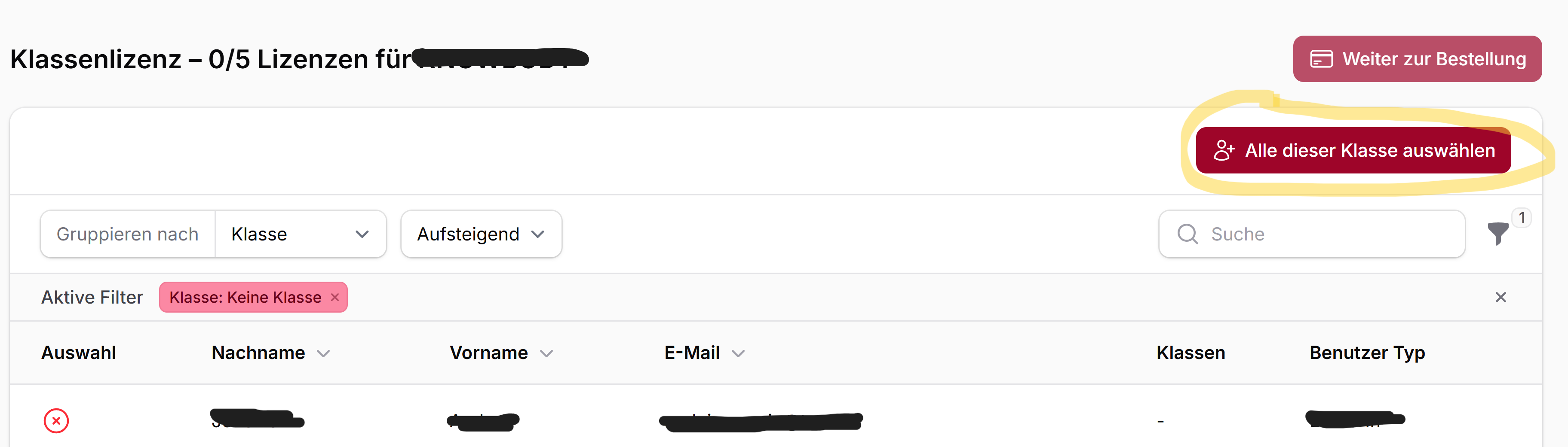 - Bei Schullizenzen: Lizenzen für alle Lehrpersonen.