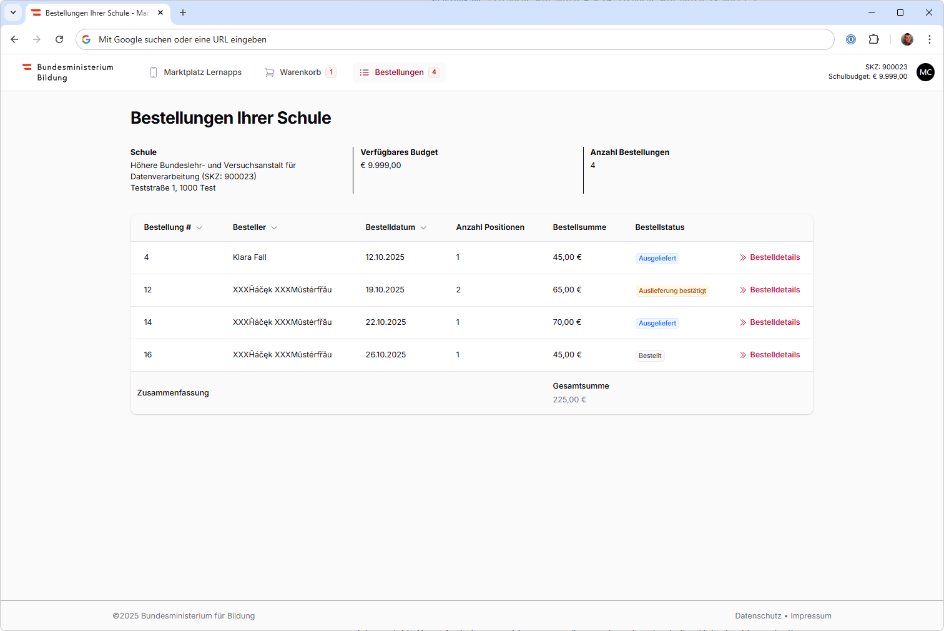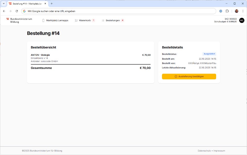 Bestellungen am Marktplatz Lernapps dürfen ausschließlich von der Schulleitung oder von Personen durchgeführt werden, die von der Schulleitung im Bildungsportal entsprechend berechtigt wurden. Mehr zur Berechtigungsvergabe finden Sie hier.