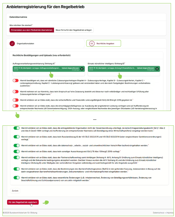 Anbietende, die bereits im Pilotbetrieb am Marktplatz zugelassen waren, durchlaufen ein vereinfachtes Aufnahmeverfahren für den Regelbetrieb im Schuljahr 2026/27.